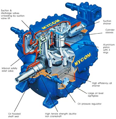 • Compressor • Suction & discharge stop valves • Capacity control solenoid valves • Internal pressure relief valve • Suction & oil sump strainers